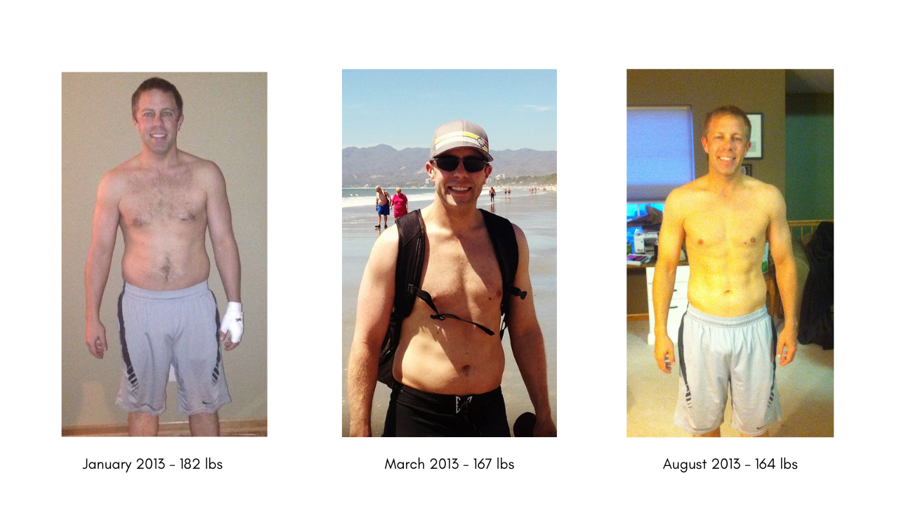 I personally notice a bigger change between pics 2 & 3. My 15 pound weight loss was rapid but it didn't change my body composition all that much. I failed to track my body fat %'s back then but I'm guessing I was in the 20% range and maybe dropped a few points even though 15 pounds came off. What that means is I lost a lot lean mass along with some fat. Lean mass is everything from bone, water, organs, muscle, contents of your GI tract, blood, etc. Pretty sure I didn't lose any bones or organs so the lean mass I did lose likely came from water, muscle and waste. Hence the distinction that I pointed out earlier between weight loss and fat loss. Between pics 2 & 3 I only lost 3 pounds but I probably dropped from 18% body fat down to 10%.